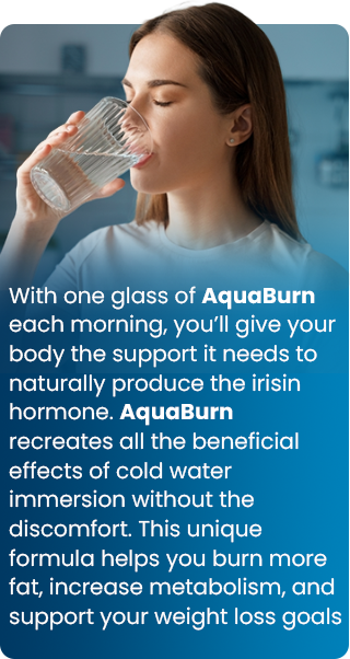 With one glass of AquaBurn each morning, you’ll give your body the support it needs to naturally support the irisin hormone. AquaBurn recreates all the beneficial effects of cold water immersion without the discomfort. This unique formula helps you burn more fat, increase metabolism, and support your weight loss goals in a simple and convenient way.